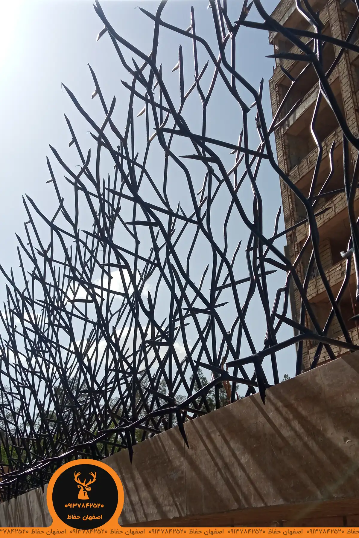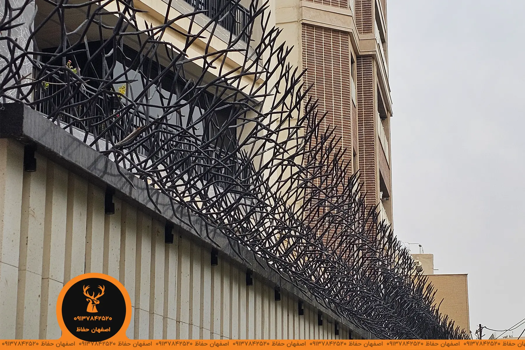 حفاظ شاخ گوزنی با طراحی درهمتنیده و تیغههای چندجهته، سطح امنیتی بسیار بالاتری نسبت به مدلهای قدیمیتر مانند حفاظ سرنیزهای یا کلاسیک دارد. در مدلهای نیزهای، شاخهها بهصورت منظم و یکجهت نصب میشوند که در صورت داشتن مهارت یا استفاده از ابزار، احتمال عبور از آنها وجود دارد. اما در مدلهای شاخ گوزنی، به دلیل تراکم زیاد و جهتگیری تصادفی تیغهها، عبور حتی برای افراد آموزشدیده هم تقریباً غیرممکن است.
